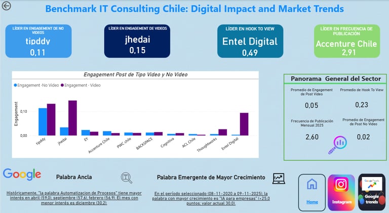 ✅ Análisis estadístico no-paramétrico │ 📊 10 consultoras TI Chile │ 🎯 Scraping + LLM + Google Trends │ 🏷️ Python · SciPy · Apify · Power BI