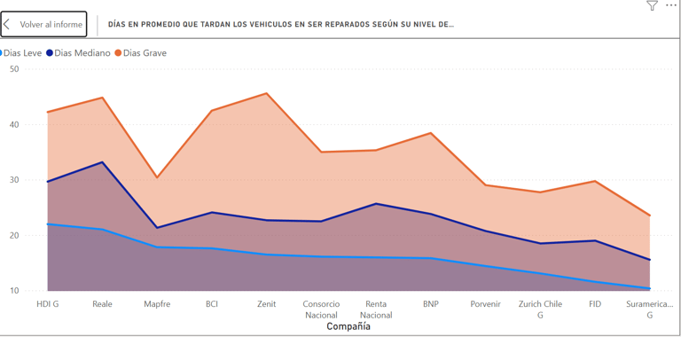 tiempo en siniestros graves es el gran diferenciador. En la curva comparativa se observan picos en algunas compañías Esto muestra que “Días Grave” no solo tiene niveles mucho más altos, sino también mayor variabilidad.